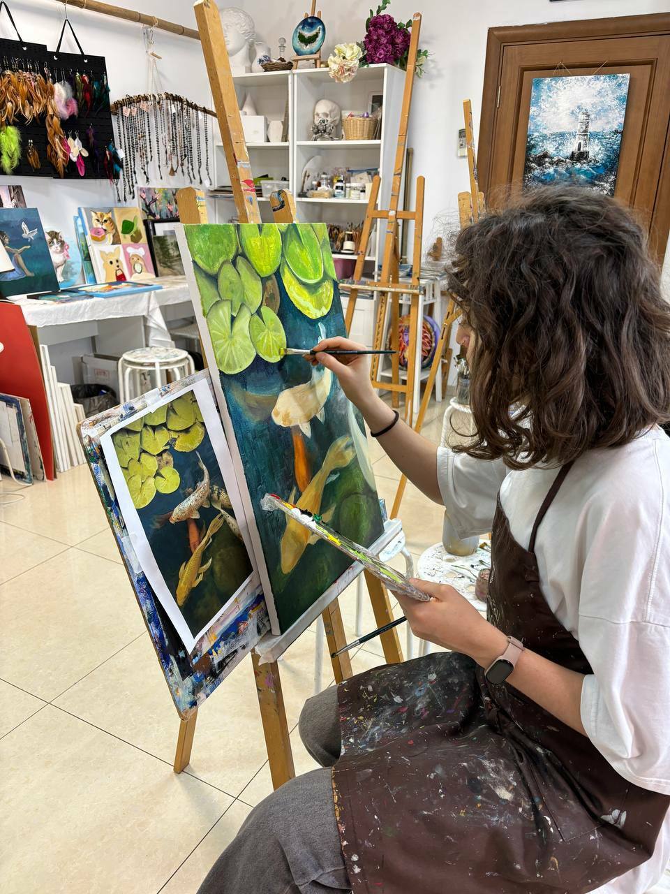 Холсты докупаются отдельно по необходимости, для живописи маслом, стоимость от 150р. до 500р. в зависимости от размера. Можно брать свои.